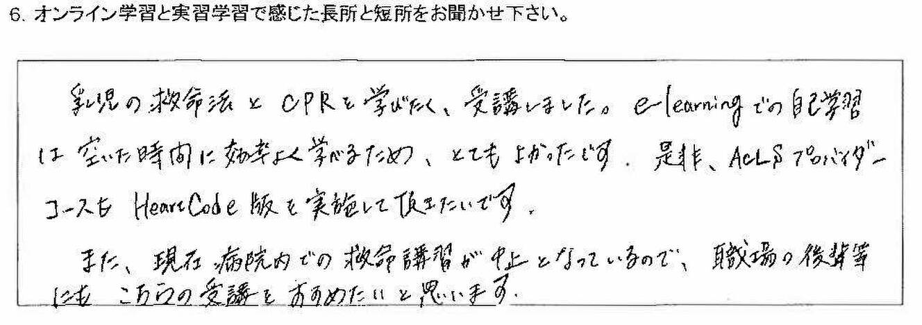 【クチコミ】オンラインBLS(HeartCode®BLS)を受講されたお客様の感想